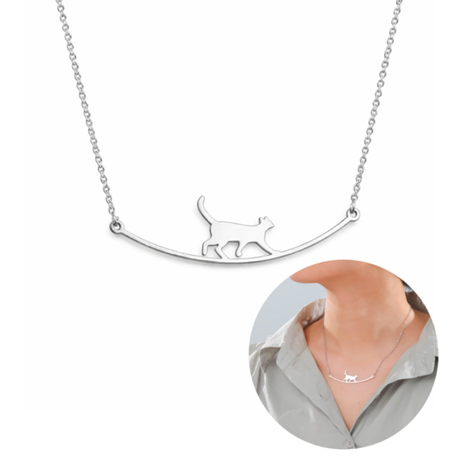Colar Feminino Minimalista Gatinho Caminhando Aço Inoxidável Tendência Simples Fofo Estiloso Gato