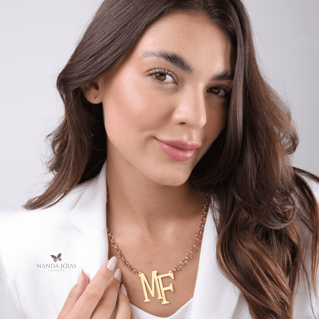 Colar Feminino Personalizado Monograma Com Letras Iniciais Do Nome Folheado A Ouro 18k
