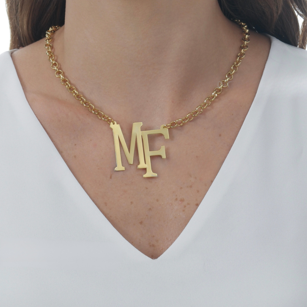 Colar Feminino Pingente Letras Iniciais Monograma Personalizado Banhado Ou Folheado A Ouro 18k