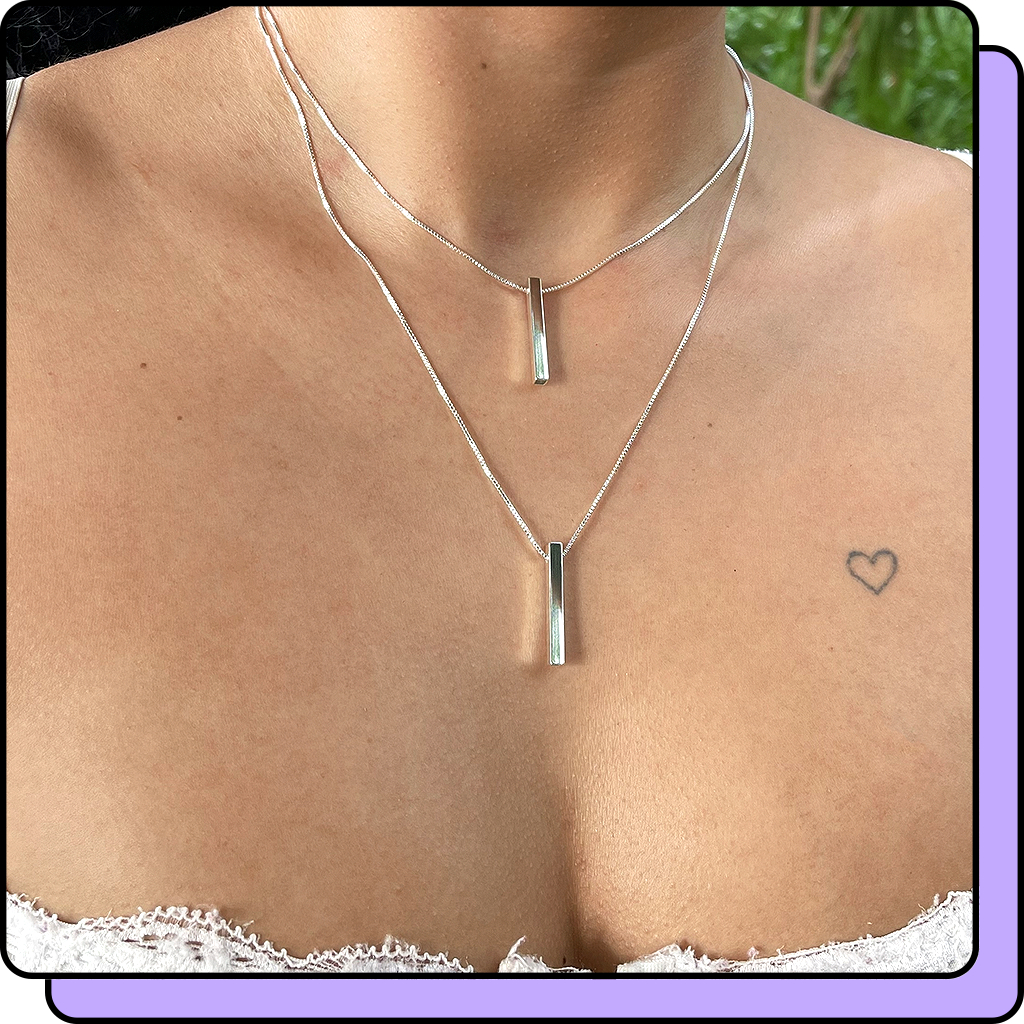 Seja bem-vindo(a) à LOJA LUNÊ! Gostou deste produto? Aproveite a oportunidade para explorar nosso catálogo completo. Acesse nosso perfil e se deslumbre com nossas peças. PRATA 925 - Nossas peças são banhadas com 5 milésimos (equivalente a 5g) de Prata 925, possuindo uma dupla camada de verniz antialérgico. Isso garante um brilho duradouro e a preservação do banho por um período prolongado. MEDIDAS: O menor com 40 cm e o maior 50 cm + 5 cm de extensor ESCURECE? - Depende de vários fatores, sendo o principal como você irá usar e armazenar as peças. A prata é um metal nobre, sensível à luz e umidade, por isso é importante cuidar bem das peças e armazená-las corretamente. GARANTIA - Oferecemos uma garantia de 30 dias contra defeitos de fabricação ou danos ocorridos durante o transporte do pedido. Ressaltamos que a garantia não cobre danos causados por mau uso. DÚVIDAS - Em caso de dúvidas, entre em contato conosco através do chat. Um de nossos atendentes estará à disposição para auxiliá-lo.