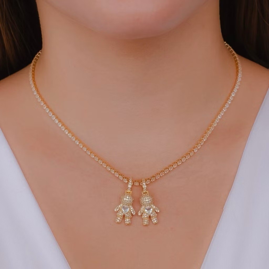 Colar Filhos Pingente Menino/Menina com Pedras Feminino Ouro 18k