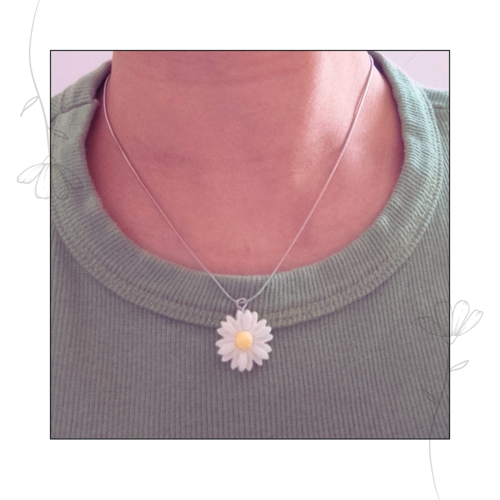 Colar com corrente de aço inoxidável prata e pingente de resina branco e amarelo. Tamanho: 23 cm. Presentei você ou quem você ama!
