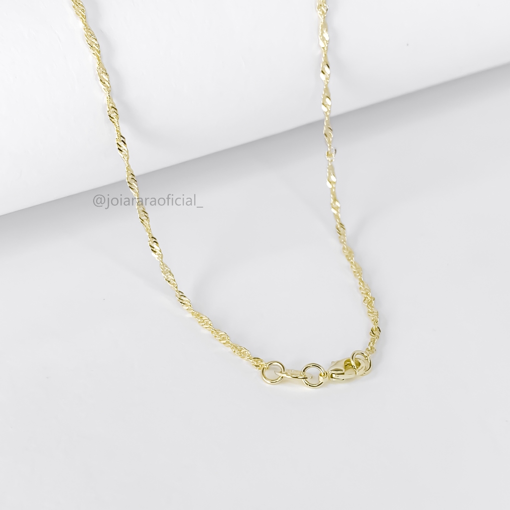 Este colar de malha banhado a ouro ou prata é delicado e encantador, é o acessório perfeito para complementar seu estilo e adicionar um toque de elegância e sofisticação a qualquer look. Feito com cuidado e atenção aos detalhes, este colar apresenta um design fino e delicado, com malha folheada a ouro, que se encaixa perfeitamente em seu estilo. Não deixe de adicionar este colar delicado à sua coleção de joias, e sinta-se ainda mais bela e confiante em seu dia-a-dia. Colar feminino torcido de malha singapura banhado a ouro ou prata Dados técnicos: comprimento: 50 cm largura da malha: 1,7 mm ❗Garantia: 3 meses contra defeitos de fabricação. 📦Produtos em estoque à pronta entrega e envio em até 24h para todo Brasil, após a confirmação do pedido. ❓Dúvidas, teremos prazer em responder via chat 💫Dicas para cuidar da sua peça: >> Evite molhar seu acessório. >> Evite o contato com perfumes e cremes. >> Limpe sua peça com detergente neutro ou com uma flanelinha seca, antes de guardar. >> Guarde-as em um local seco, protegidas do calor, da umidade e do sol e separadas de outras peças. Assim você terá seus acessórios perfeitamente conservados por muito mais tempo! Boas Compras❤️