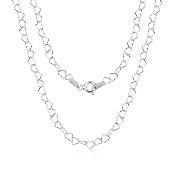 Colar Gargantilha Feminina de Prata 925 Elos Coração 40cm