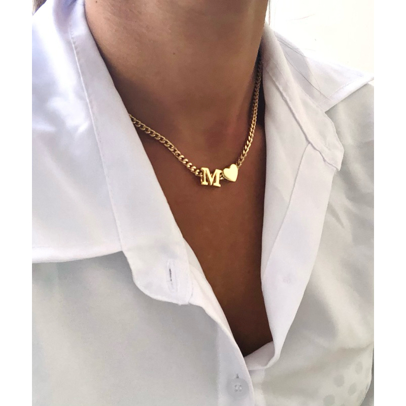 Colar Gargantilha Inicial Letra Banhado em Ouro 18k Colar Choker Feminino Prata com Letra