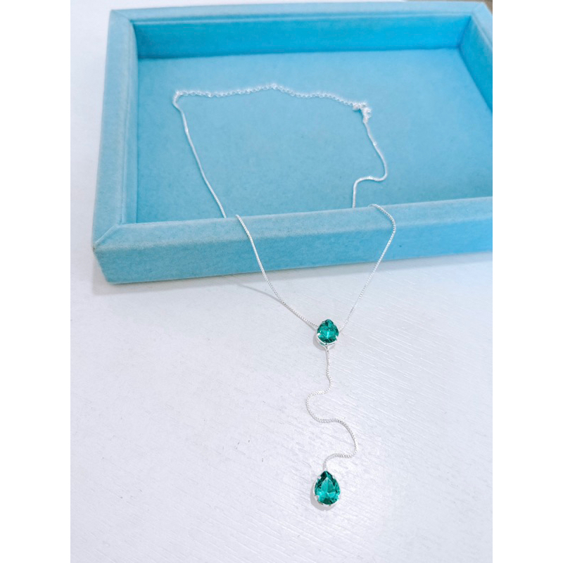 Colar gravatinha gota esmeralda banhado à prata 925