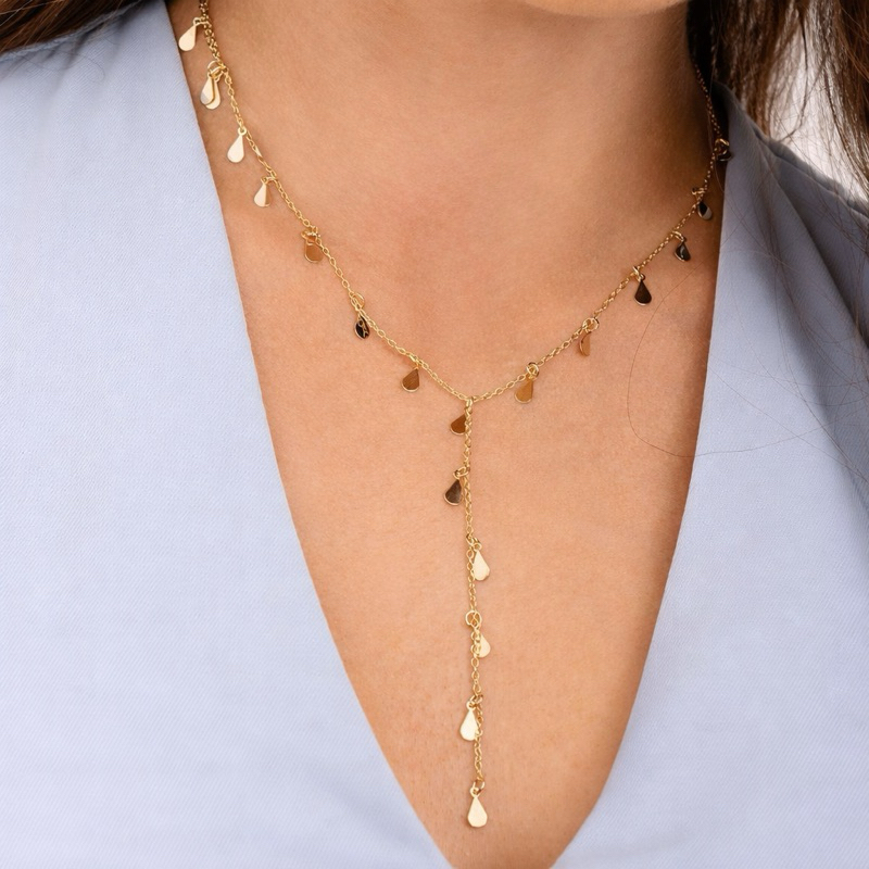 Colar Gravatinha Gotinhas Feminino a Ouro ou Prata 925 Semijoia