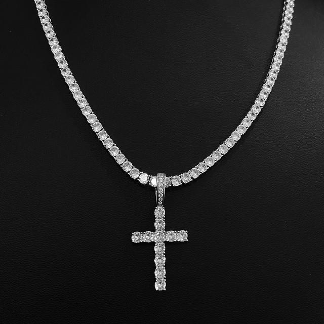 Colar Ice chain Riviera 50cm com pingente de Cruz Premium cravejado A+++