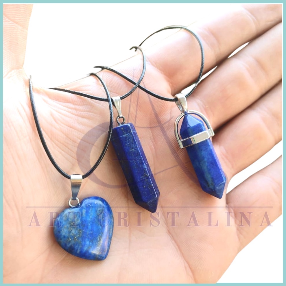 Colar Lápis-lazúli Pedras Naturais, Cordão Regulável - Coração, Ponta Pendulo, Pendulo em Metal !