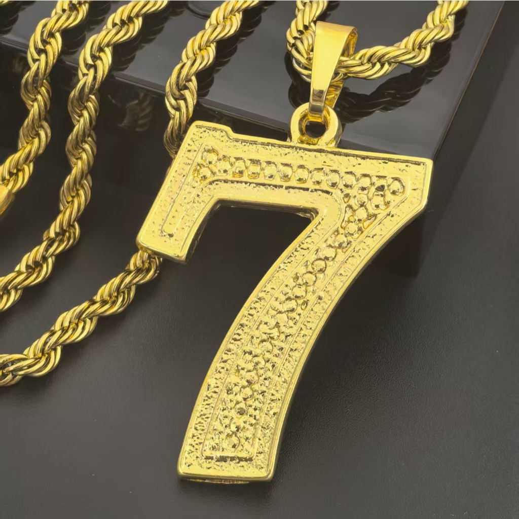 Colar - Masculino com Cordão de Moeda Antiga e Pingente de Cadeado Cassino Número 7 - Banhado a Ouro