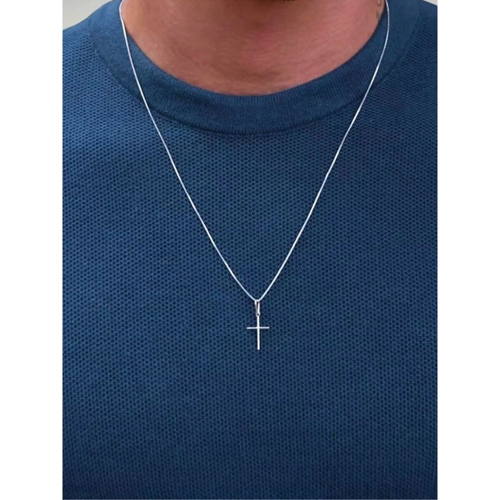 Colar Masculino Crucifixo Cruz Corrente de Prata 925 Veneziana 50cm e 60cm