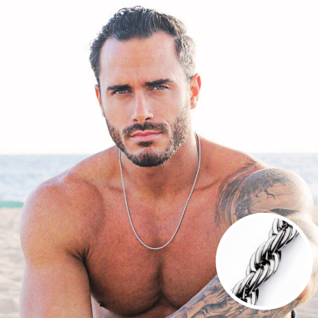Colar Masculino de Corrente de Aço Inoxidável Corda Torcida em Prata Colar Cartier