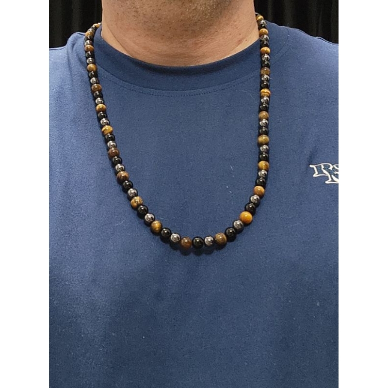 colar masculino de pedras olho de tigre onix e hematita 8mm grande 50cm 60cm 70cm e 80cm Proteção