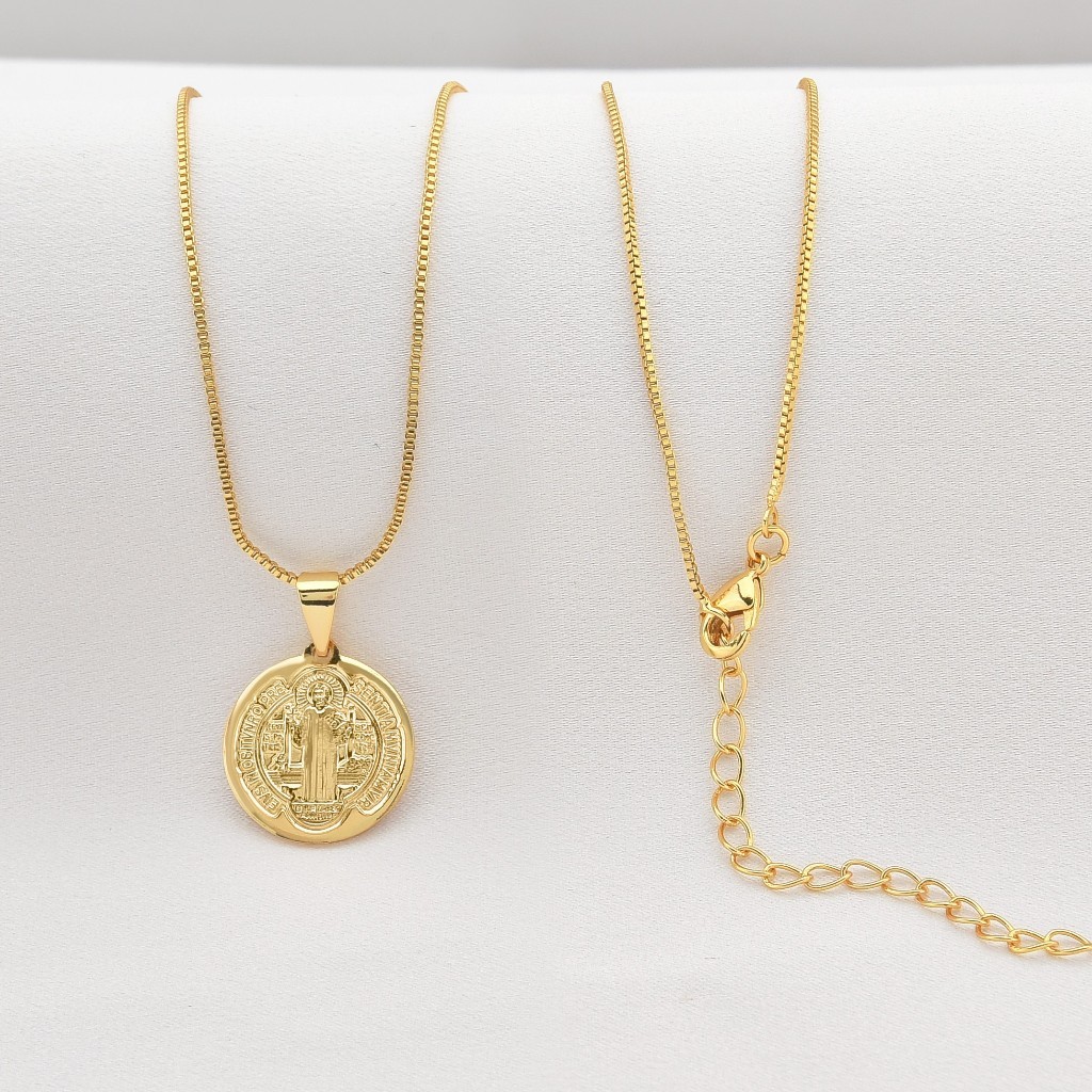 Colar Medalha São Bento Feminino Banhado a Ouro 18k Corrente Blogueira Semi Joia