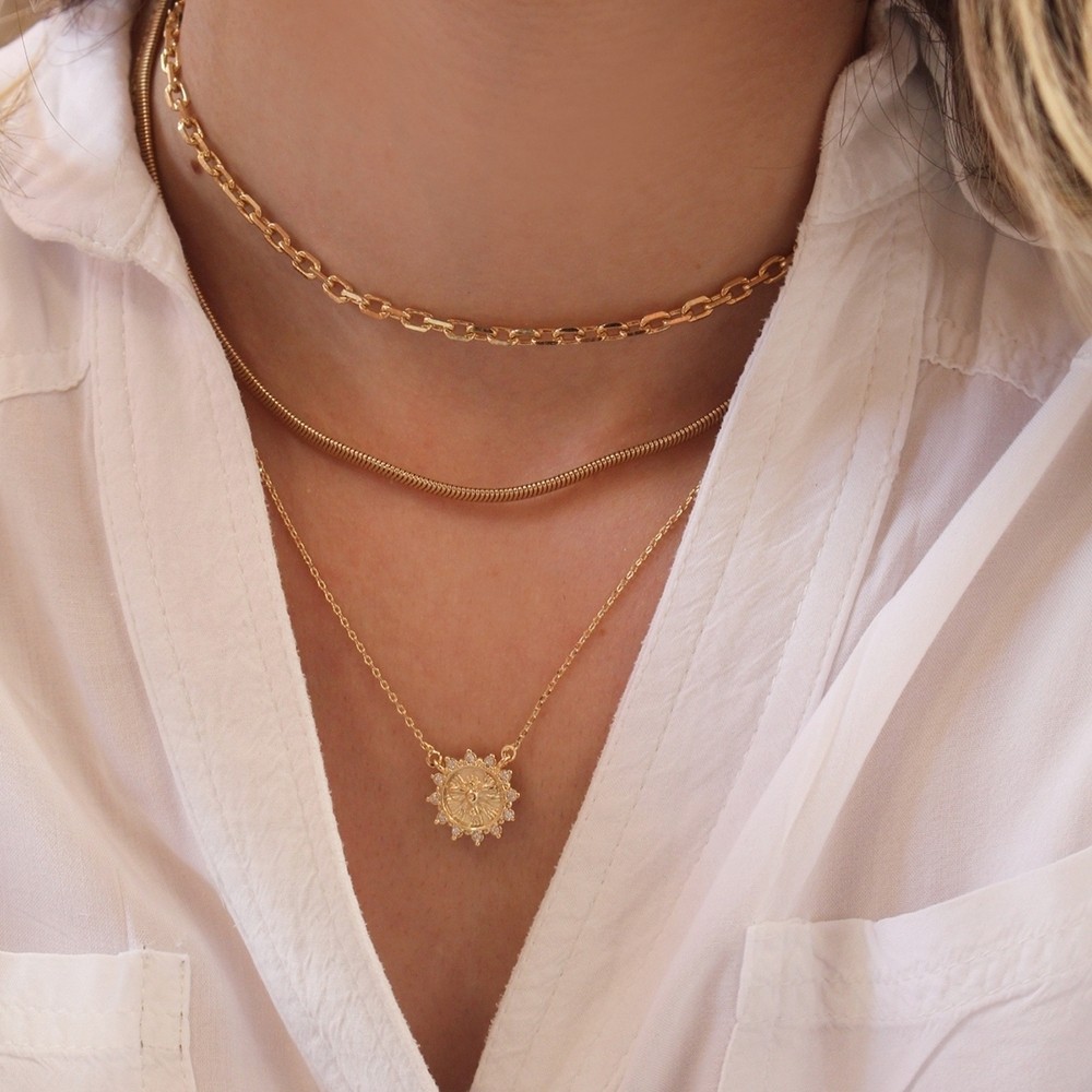 Material: Metal e zircônia. Banho: Ouro 18K. Tamanho do Colar: 40 cm + 8 cm (extensor). Tamanho do Pingente: 1,5 cm x 1,5 cm. Peso: 0,005gr. O colar Espírito Santo é uma joia delicada e cheia de significado. Com uma mini medalha central representando o Espírito Santo, símbolo de proteção e fé, esta peça é cuidadosamente adornada com zircônias na cor cristal, proporcionando um toque de sofisticação e luminosidade. Folheado a ouro 18K, o colar combina a durabilidade do acabamento de alta qualidade com a elegância atemporal, ideal para quem busca uma peça versátil, que pode ser usada tanto no dia a dia quanto em ocasiões especiais. Um acessório que une espiritualidade e estilo de forma discreta e refinada. Observações - Garantia de 3 meses quanto ao banho. - É uma peça hipoalergênica, pois não contém níquel em sua composição. - Dica da Piuka: Para fazer a limpeza dos seus acessórios, use nossa flanela mágica, ela ajudará a manter suas peças sempre brilhantes.