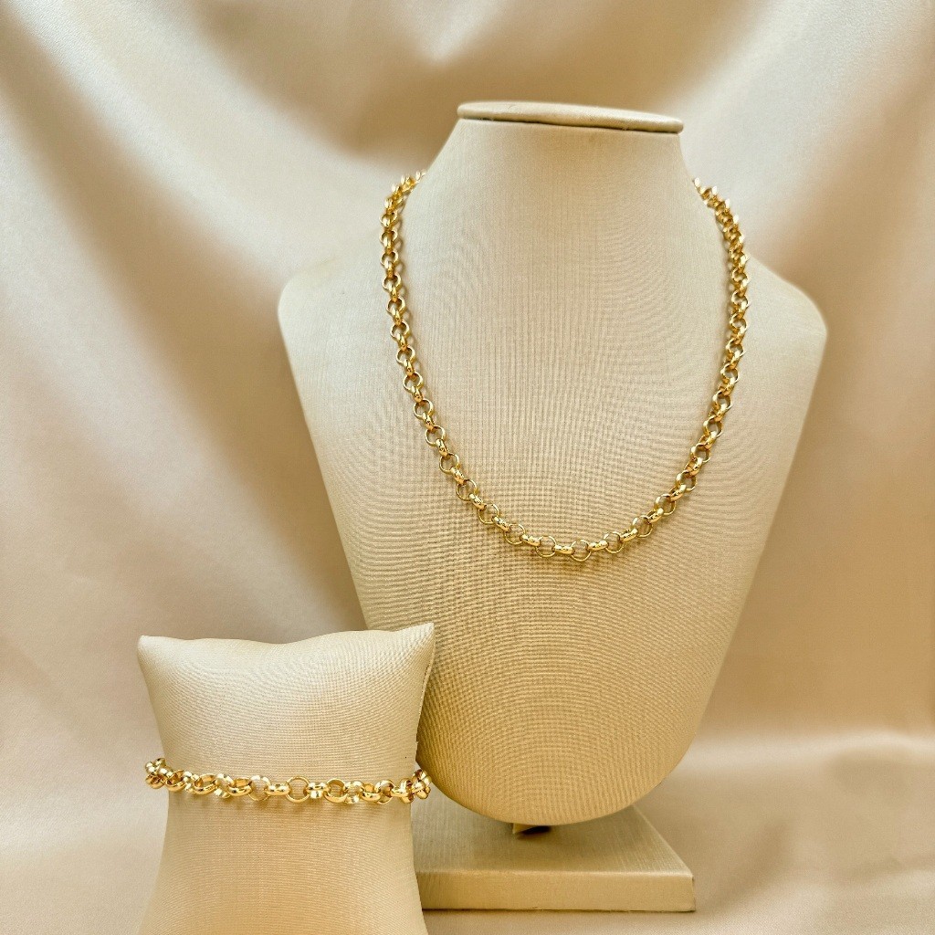 Colar e Pulseira feminino elo português 5mm 100% moeda antiga Vantagens da Joia: Não Mareia, Não Preteja, Não Perde o Dourado e é anti-alérgica Garantia: Eterna Medidas: Corrente: 5mm de largura 45cm de comprimeto (Pode regular em tamanho menor) Pulseira: 5mm de largura 20cm de comprimento (Pode regular em tamanho menor) Enviamos para todo o Brasil Gender:Female Necklace/Bracelet Style:Choker Necklace Length:Short