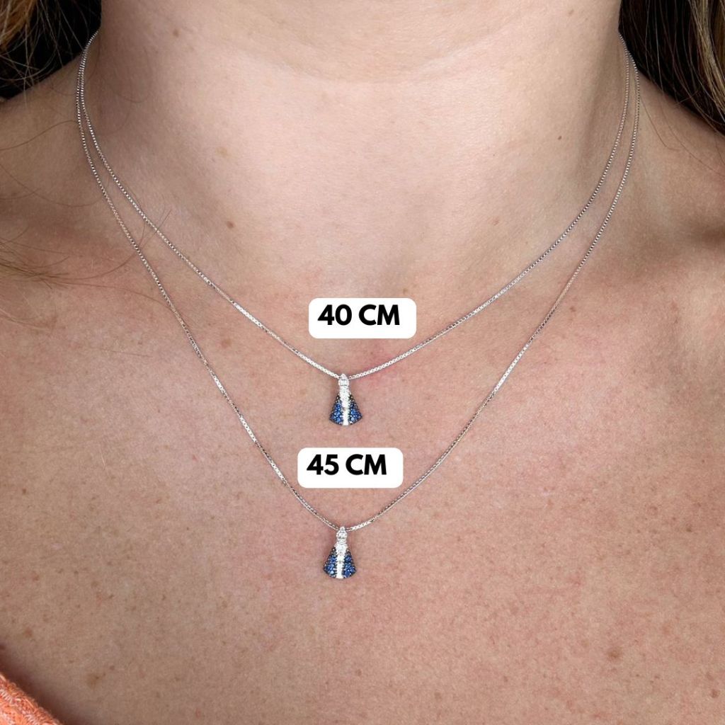 Colar Nossa Senhora Aparecida de Prata 925 com Caixinha para Presente: Fé, Delicadeza e Carinho O Colar Nossa Senhora Aparecida de Prata Legítima 925 é uma joia delicada e cheia de significado, perfeita para expressar fé, devoção e proteção. Acompanha caixinha para presente, tornando-se uma escolha especial para presentear em momentos importantes como batizados, aniversários, datas religiosas ou simplesmente para demonstrar carinho. Seu design leve e elegante combina facilmente com o dia a dia. Especificações do Colar Tamanhos Disponíveis: 40cm / 45cm Largura da Corrente: 0,6mm Tamanho do Pingente: 10mm Peso: 1,47g (40cm) / 1,57g (45cm) Material: Prata 925 Destaques do Colar Pingente de Nossa Senhora Aparecida, símbolo de fé, proteção e devoção. Corrente delicada em Prata 925, ideal para uso diário. Disponível em dois tamanhos para melhor ajuste ao colo. Acompanha caixinha para presente, pronta para surpreender. Acabamento refinado, com brilho suave e elegante. Uma Joia de Fé para Presentear O Colar Nossa Senhora Aparecida de Prata 925 é ideal para quem deseja carregar consigo um símbolo de proteção ou presentear alguém especial com uma joia cheia de significado. Leve, delicado e elegante, ele transmite espiritualidade e carinho em cada detalhe. Cuidados com a Joia Evite contato com perfumes, cremes e produtos químicos para preservar o brilho da prata. Guarde em local seco e separado para evitar oxidação. Limpe com flanela macia para manter o acabamento impecável. Fé, Proteção e Elegância em Prata 925 O Colar Nossa Senhora Aparecida de Prata Legítima 925 com Caixinha para Presente é uma joia atemporal, perfeita para marcar momentos especiais com fé, delicadeza e muito significado. Uma escolha certeira para quem valoriza espiritualidade e bom gosto.