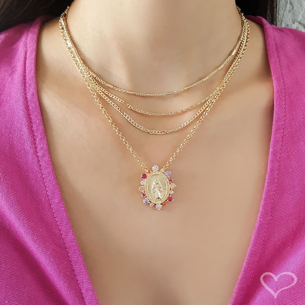 | COLAR NOSSA SENHORA DAS GRAÇAS MEDALHA MILAGROSA ZIRCÔNIAS COLORIDA... este produto | R$ 239,88 | — | 4.0/5 | — |