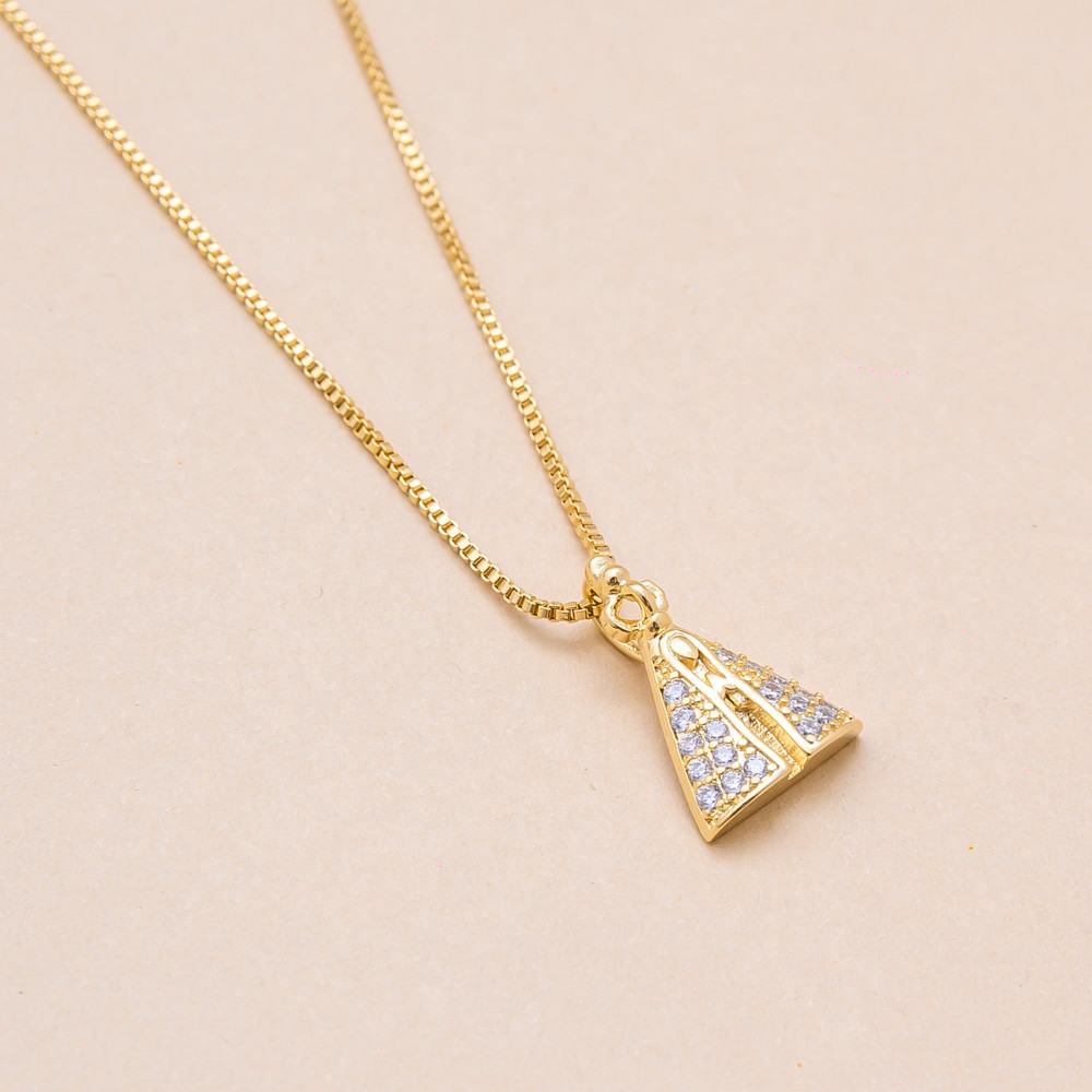 Colar Nossa Senhora Zircônias com Banho em Ouro 18k