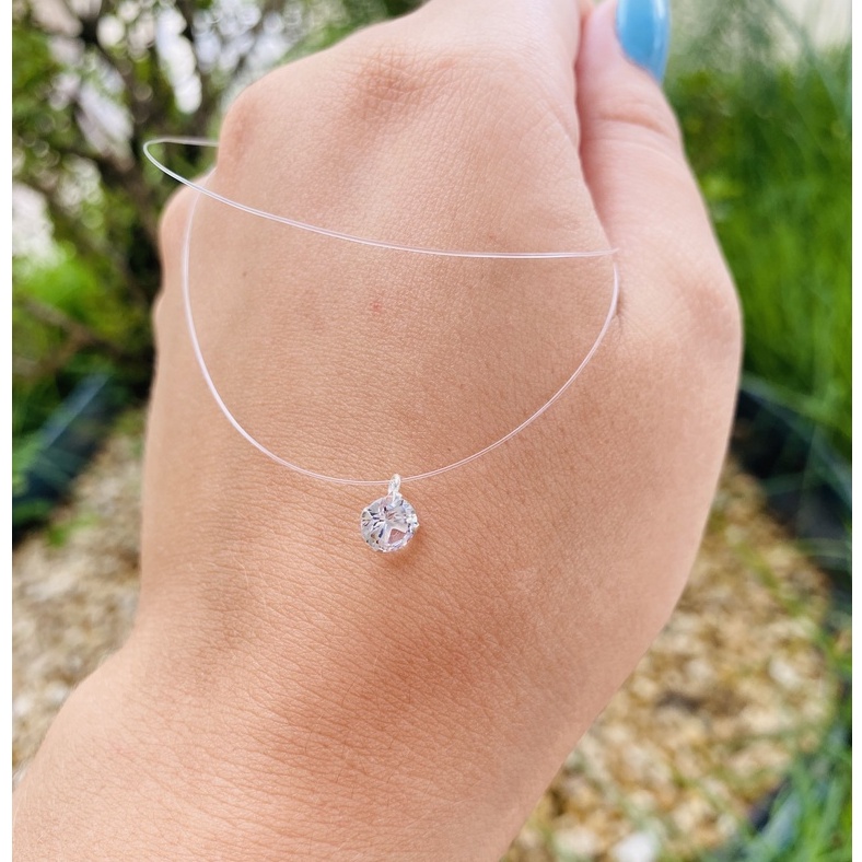 Colar Nylon De Prata 925 Ponto de Luz 40cm Pedra Zircônia 5mm