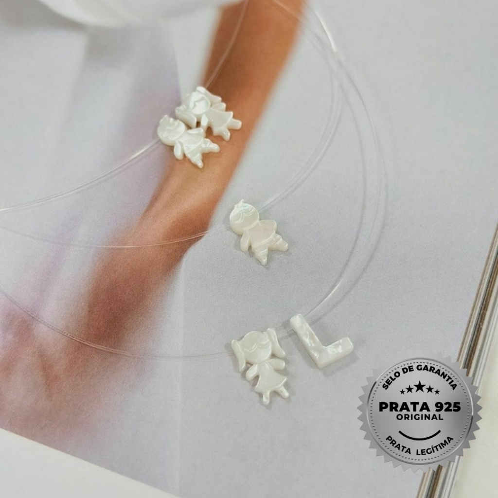 Colar Nylon Filhos Madrepérola Delicado Acabamento Prata 925