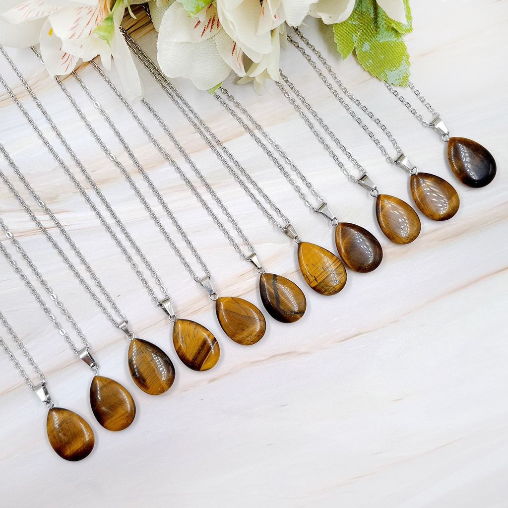 Colar Olho de Tigre Gota em Aço Inoxidável 316L Hipoalergênico