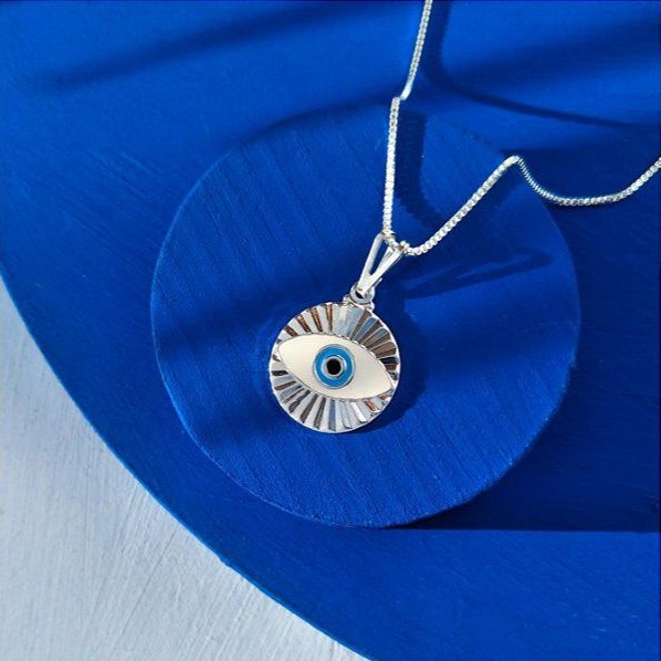 Colar olho Grego Medalha Banhado a Prata 925