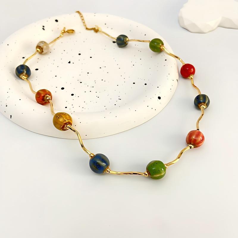 Colar Ondulado De Contas De Cerâmica Coloridas Vnox Para Mulheres E Meninas , Com Bola De Ouro , Presente De Joia