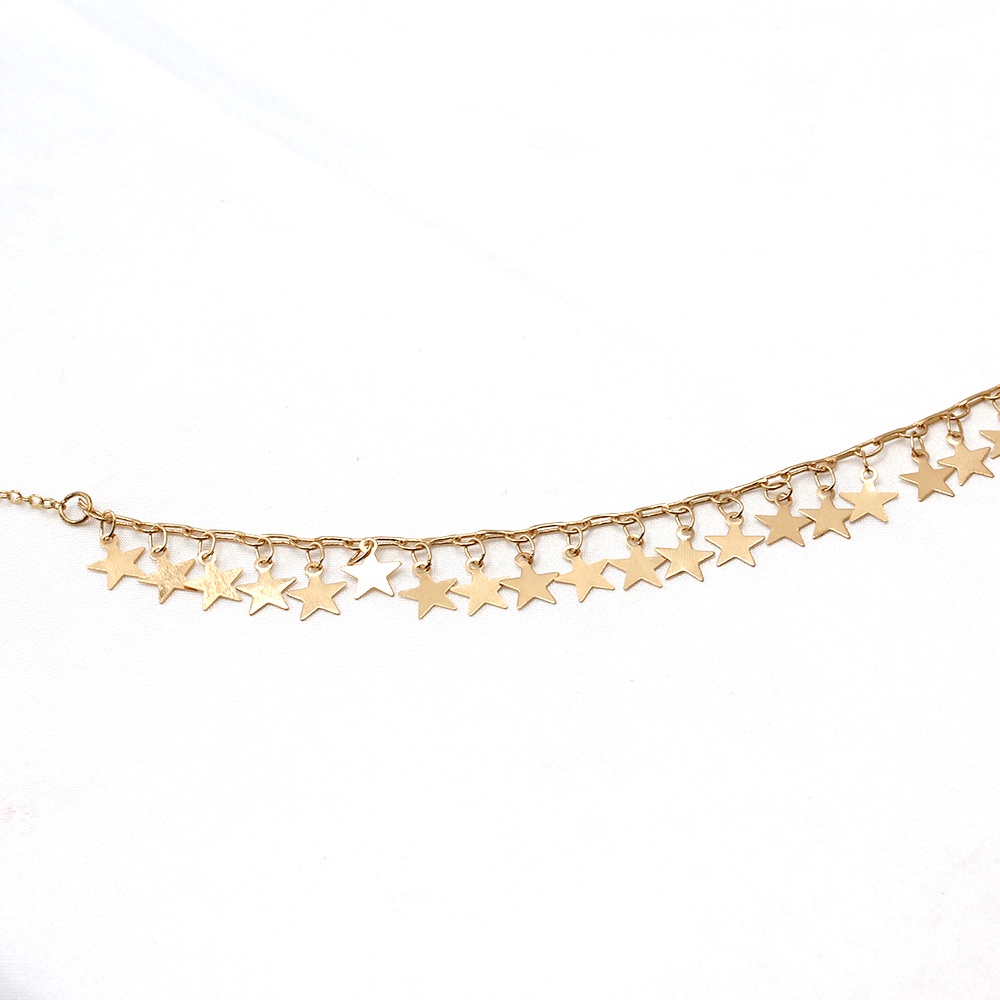 Colar Ouro Choker com Pingentes de Estrelas Dourado Colar da Moda Choker 02