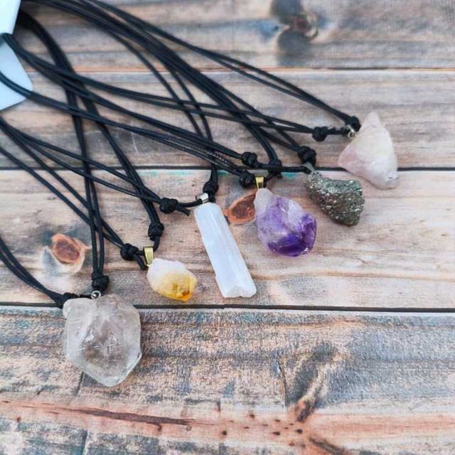 Colar Pedra Natural Bruta Energia e Proteção – Quartzo, Citrino, Ametista, Selenita, Pirita e Mais