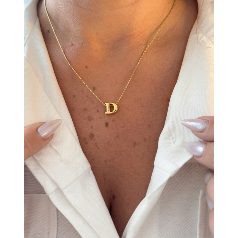 COLAR FEMININO PERSONALIZADO INFORMAR NA OBSERVAÇÃO DO PEDIDO COMO DESEJA ATÉ 3 LETRAS FOLHEADO A OURO 18k 40cm + 5cm extensor FOTO REAL DA PEÇA ENVIO IMEDIATO