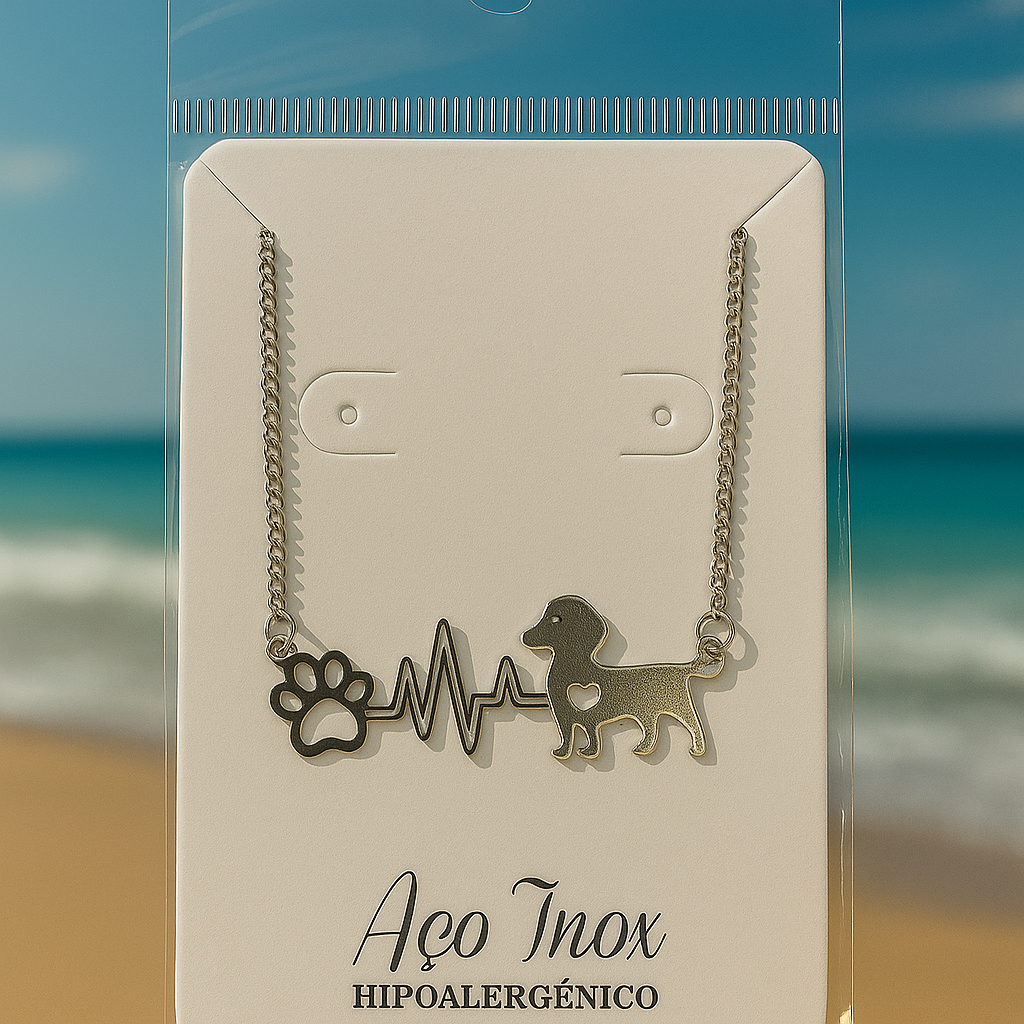 Colar Pet Coração com Pingente de Cachorro e Patinha – Aço Inoxidável Hipoalergênico – Amor pelos Animais