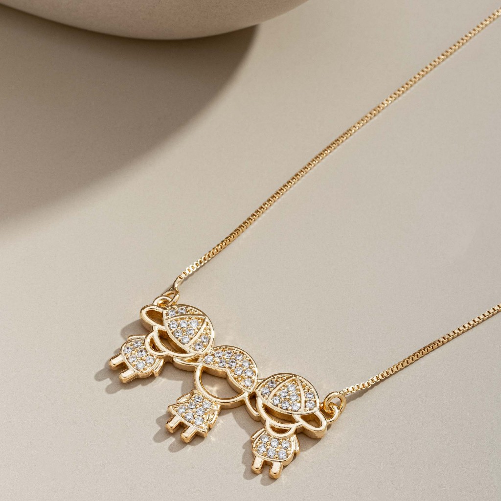 Colar Pingente 03 Filhos Cristal Banhado Ouro 18K