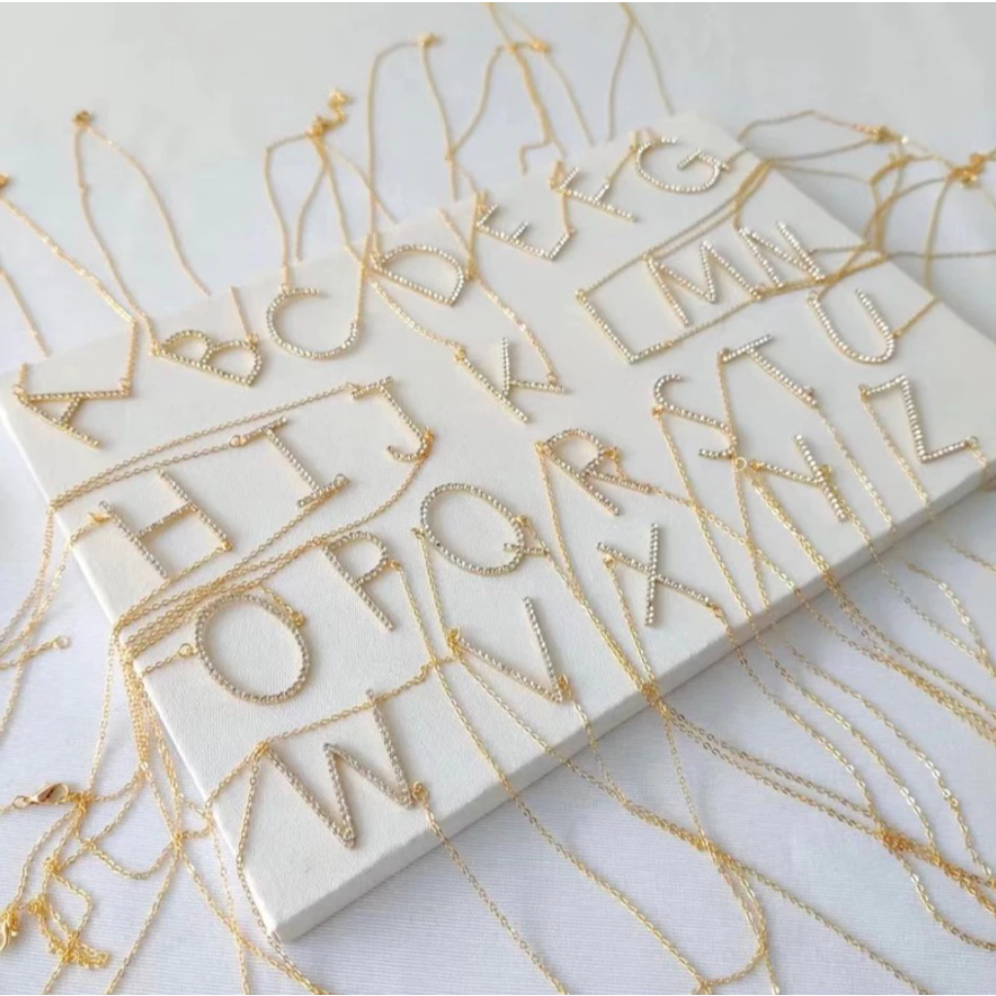 Colar Pingente de Letra Feminino Inicial nome Cravejada Folheado Dourado E Prata