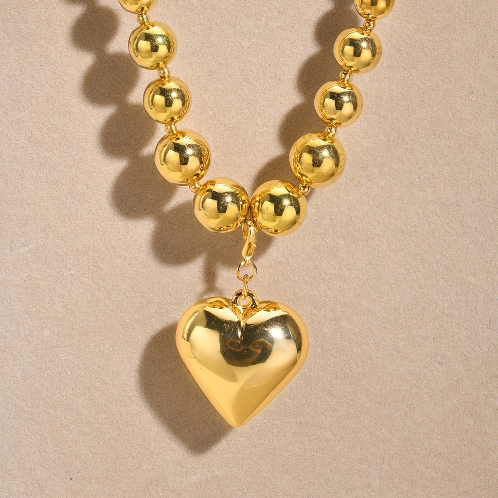 Colar Pingente Em Forma De Coração Vnox Round Bead Pendant , 18k Gold Big Choker Aço Inoxidável Para Acessórios De Moda Feminina