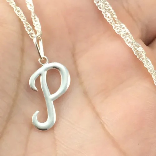 Colar pingente Letra Inicial nome prata folheado prata 925
