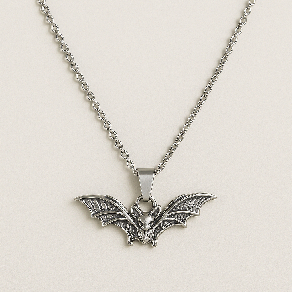 Colar com Pingente de Morcego pequeno e delicado para você que é uma pessoa noturna e gosta de ahazar nos acessórios Medidas Aproximadas: Pingente: 2.3 x 0.8cm Disponível em duas disponibilidades de tamanhos de corrente escolha seu preferido nas variações Comprimentos das correntes disponíveis: 45cm ou 60 cm Material do corrente: Aço Cirúrgico Inoxidável 316L Material do Pingente: Metal Largura do corrente : 2mm