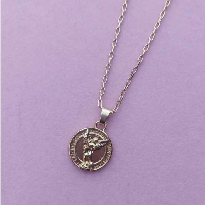 Colar Pingente São Miguel Arcanjo Liga de metal banhado a ouro com verniz Italiano Corrente 45 centímetros Pingente 1,7 centímetros