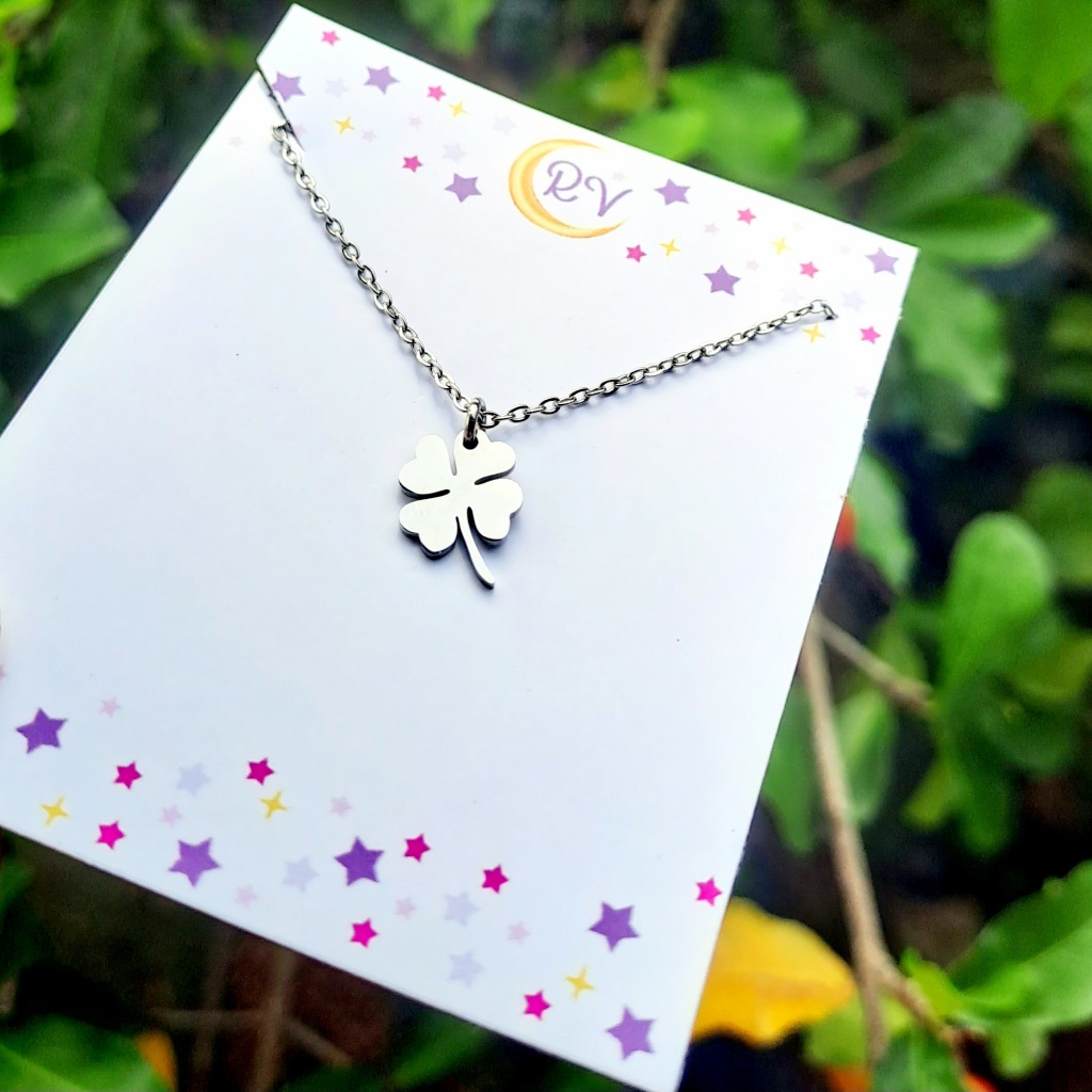 Colar Pingente Trevinho Trevo de 4 Folhas da Sorte Aço Inoxidável