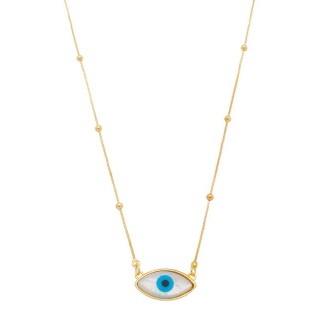 COLAR PIUKA KIKA OLHO GREGO MADRE PÉROLA FOLHEADO A OURO 18K