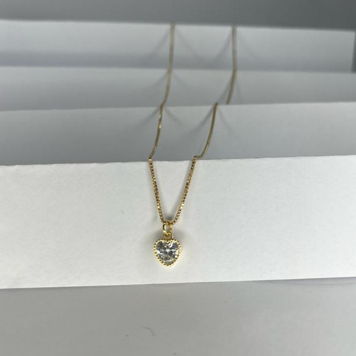 Colar ponto de luz coração, corrente joia zirconia