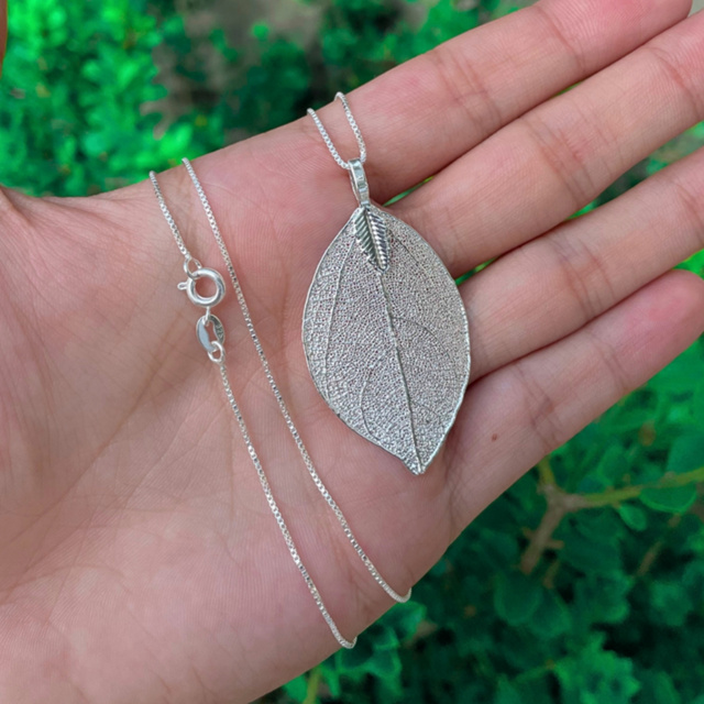 Colar Prata 925 Legítima Veneziana v12 + Pingente Folha Fina Corrente Prata Pura Maciça Kit Feminina