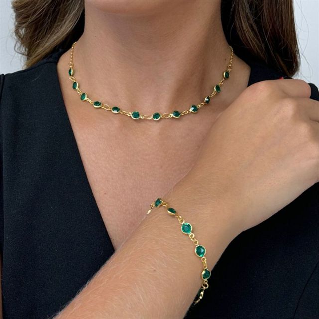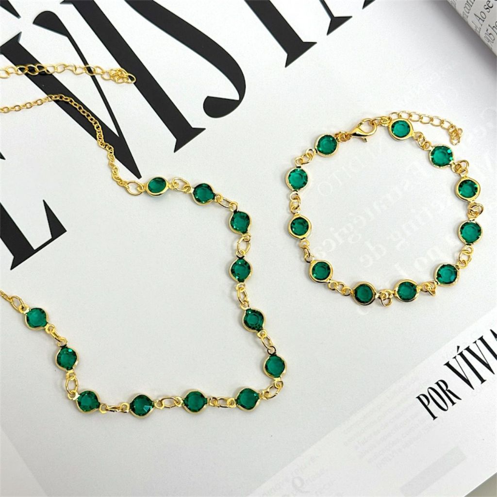 Colar + Pulseira Cristal Esmeralda Banhado a Ouro 18k