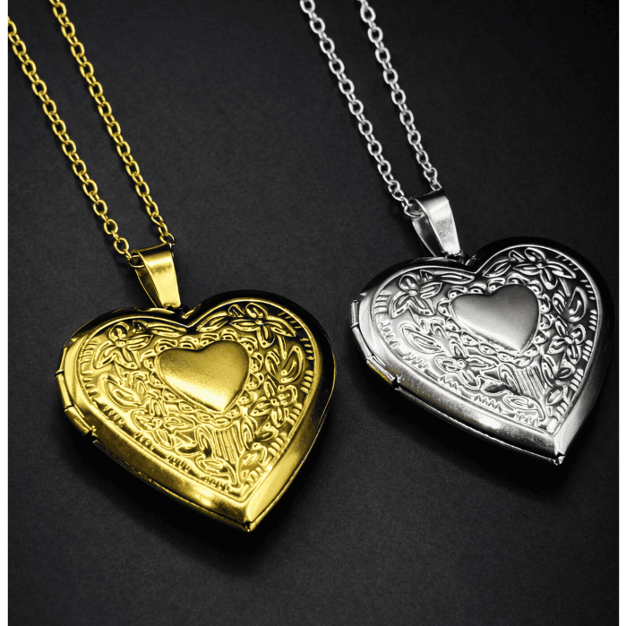 Colar Relicário com Desenho de Coração Trabalhado em Aço Inoxidável – Prata ou Dourado