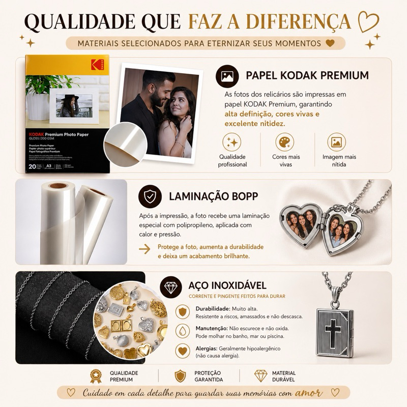 | Colar Relicário para Fotos Personalizado Aço Inoxidável Hipoalergênico | R$ 25,99 | 37% | 4.8/5 | 5 |