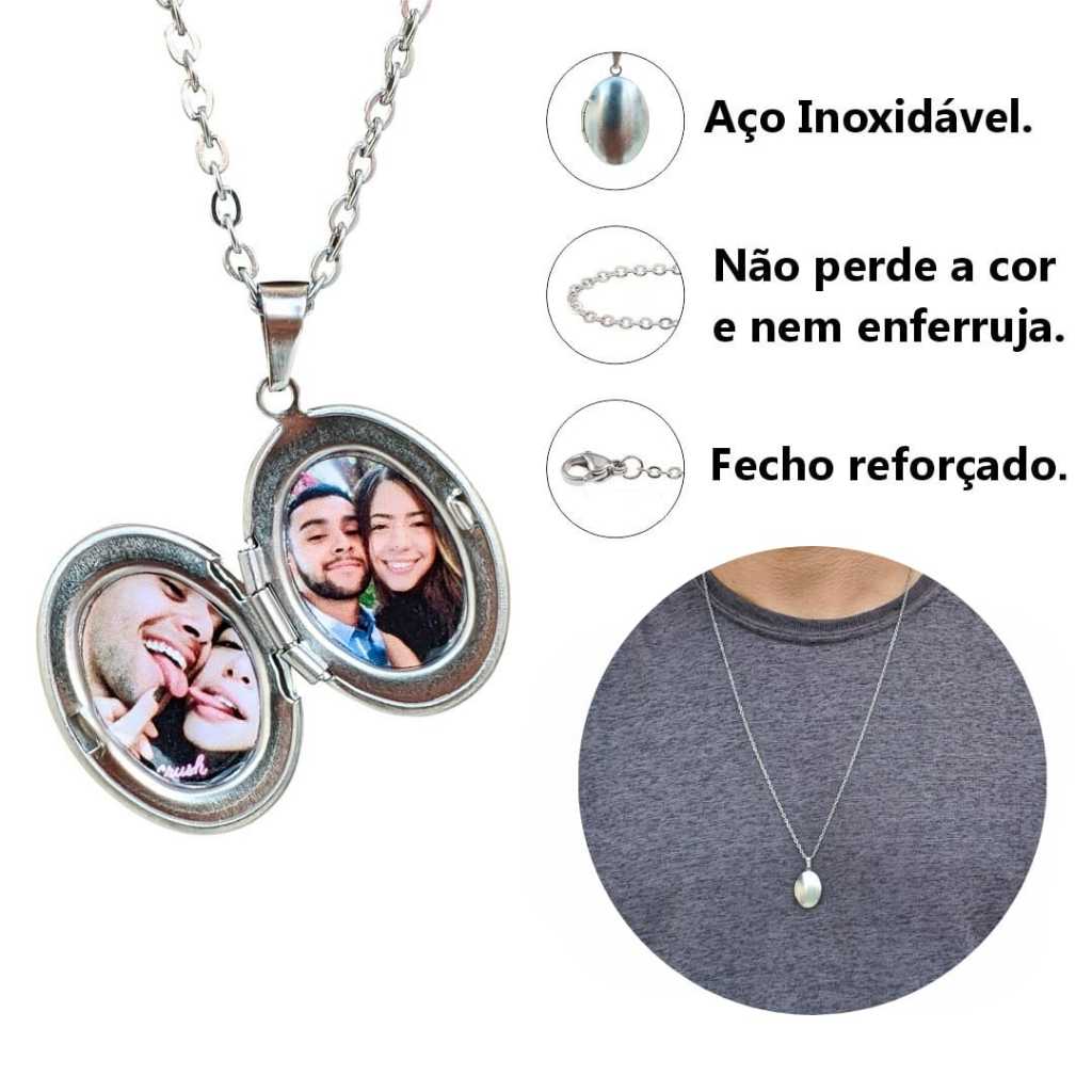 Colar Relicário Corrente Masculino com Foto Presente, Namorado, Casal