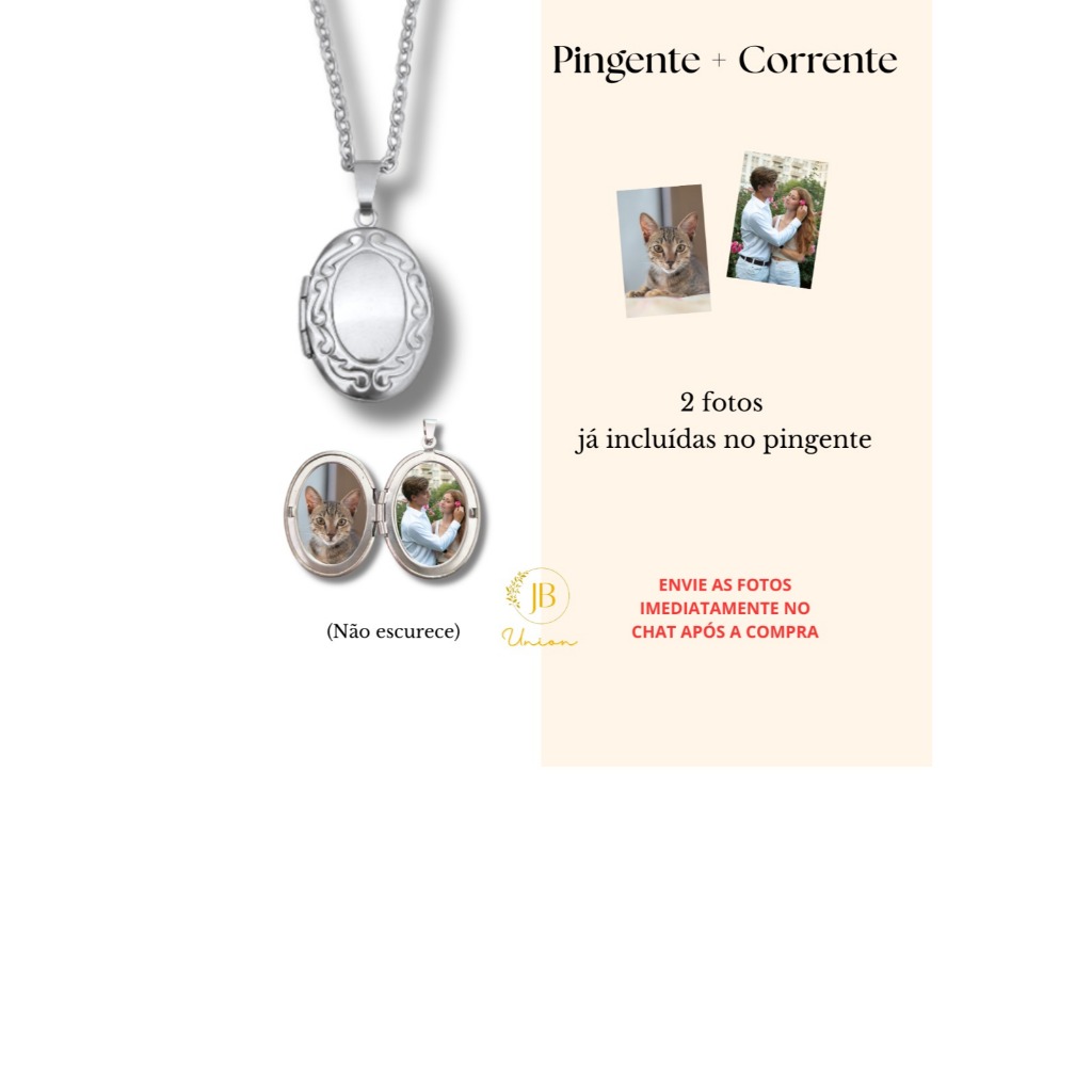 IMPORTANTE LEIA A DESCRIÇÃO!! ATENÇÃO: ENVIAR AS FOTOS NO CHAT IMEDIATAMENTE após o pagamento, caso o cliente não entre em contato o pedido será enviado SEM AS FOTOS cumprindo os prazos da plataforma. Na variação SOMENTE O PINGENTE ESTÃO INCLUÍDAS AS 2 FOTOS NO PINGENTE Nas Variação Colar + Relicário ESTÃO INCLUÍDAS AS 2 FOTOS DO PINGENTE Colar + Relicário + Caixinha 2 (DUAS) fotos incluídas no pingente e 1 (UMA) foto como polaroid (pode ser diferente) MATERIAL DO COLAR E DO PINGENTE AÇO INOXIDÁVEL (NÃO Escurece, pode molhar) MEDIDAS COLAR E PINGENTES Coração trabalhado /liso Pingente 2cm Corrente 45 cm Colar Relicário Oval trabalhado/liso Pingente 2.2x1.6cm Corrente 50+5 cm Colar Relicário Redondo liso Pingente 2x2 cm Corrente 50+5 cm