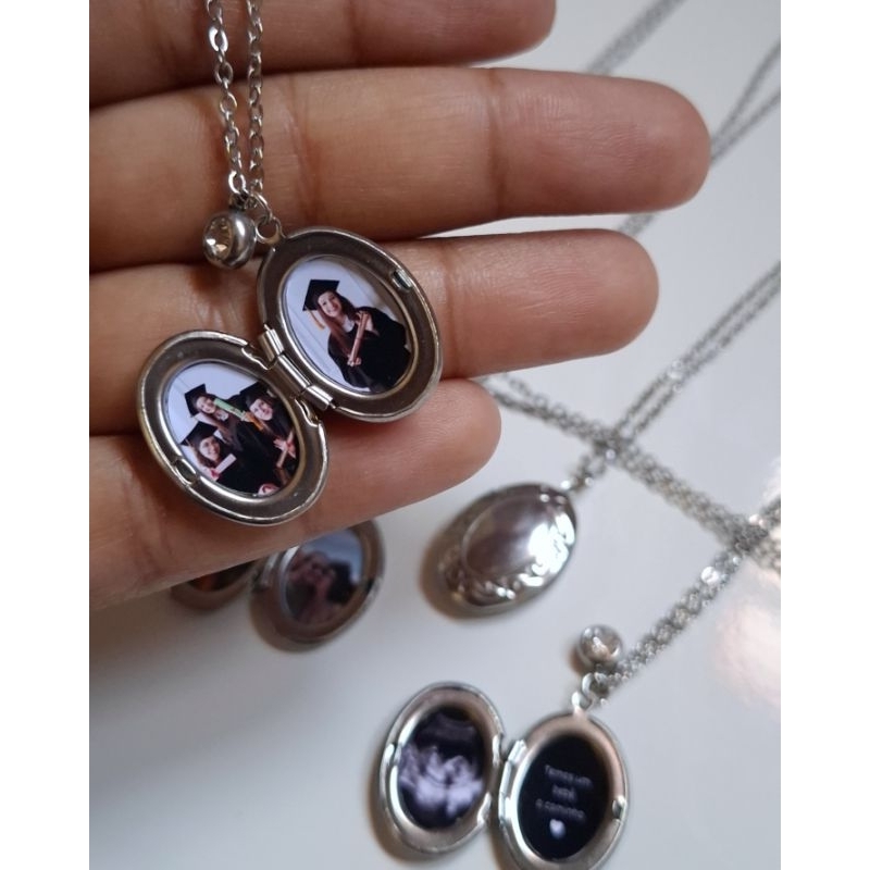 Colar Relicário em Aço inox hipoalergênico personalizado com 2 fotos. Corrente 45cm Fotos impressas em papel fotográfico glossy OBS: As informações para personalização devem ser enviadas pelo chat imediatamente após a confirmação do pedido. Caso as informações não sejam recebidas em até no máximo 12h após a confirmação, seu pedido poderá ser enviado sem personalização. Estou a disposição via chat para esclarecer qualquer dúvida 🥰