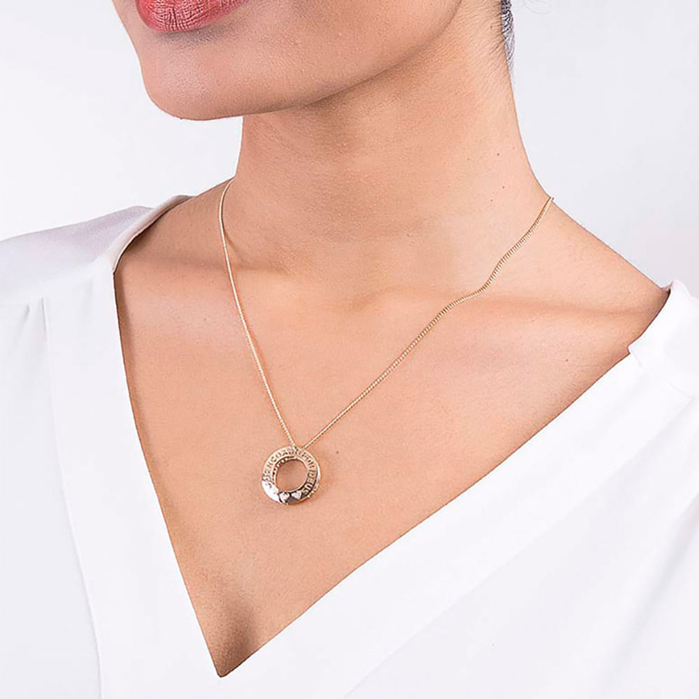 Gargantilha formada por fio 0,40 lixado com pingente no formato redondo com descrição vazada "abençoado por deus" com detalhe de 3 corações trabalhados. med. 50 cm ajustável à 45 cm. Produtos_______Folheado a ouro 18k Gênero_________Feminino Faixa etária_____Adulto Tema___________Religioso Coleção_________Linha Permanente Rommanel Estilo___________Colar com pingente Formato________Redondo Categoria_______Colares e correntes PRODUTO 100% ORIGINAL DA ROMMANEL, ACOMPANHA O CERTIFICADO DE GARANTIA ROMMANEL COMO IDENTIFICAR UMA JÓIA AUTENTICA ORIGINAL ROMMANEL A autenticidade da joia Rommanel está garantida em cada peça com a presença da borboleta, símbolo da qualidade dos produtos. A identificação é feita nas tarraxas dos brincos, nas contra-argolas dos cordões e pingentes, bem como na parte interna dos anéis uma borboleta minuscula em baixo relevo. Ao comprar uma joia folheada Rommanel verifique se ela está corretamente identificada e acompanhada da etiqueta com código de barras exclusiva e certificado de garantia. OBS: SE FICAR NA DÚVIDA, PODE VERIFICAR A AUTENTICIDADE E ORIGINALIDADE DA PEÇA EM QUALQUER LOJA ROMMANEL JOIAS HIPO-A.LER.GÊ.NI.CAS A NÍQUEL O níquel é um metal que pode desencadear der.ma.tite alér.gi.ca, reação que provoca co.ce.ira e verme.lhidão na pele. Por isso, a empresa adotou os padrões internacionais para a confecção de suas joias, firmando seu compromisso de peças 100% livres de níquel e chumbo em sua composição. SINÔNIMO DE QUALIDADE A ROMMANEL é sinônimo de qualidade. Isso porque suas joias são fabricadas com as melhores matérias-primas e tem acabamento artesanal de joalheria. Na fabricação das joias é utilizada a mais moderna tecnologia de eletrodeposição de metais. O controle desse processo é feito com laboratórios e maquinário de última geração, oferecendo a seus consumidores produtos com padrão internacional de qualidade. A ROMMANEL PRODUZ JOIAS FOLHEADAS A OURO 18K, JOIAS FOLHEADAS A RHODIUM, JOIAS FOLHEADAS A PLATINA, JOIAS FOLHEADAS A RHODIUM NEGRO E JOIAS EM AÇO. Nossas joias são produzidas dentro dos mais rigorosos padrões de qualidade. A espessa camada de ouro 18k e/ou rhodium depositadas em nossas peças – superior à média de mercado – garante acabamento similar ao de uma joia maciça e uma durabilidade superior , em relação a outras joias folheadas. No entanto, recomendamos alguns cuidados que vai descrito no certificado de garantia para manter sua joia sempre como nova. BANHO DE OURO A quantidade de ouro, associada a alta tecnologia com acabamento artesanal, assegura que a qualidade da joia Rommanel seja muito superior à média do mercado. Cada peça recebe 3 camadas de ouro e passa por análise minuciosa para certificar a quantidade depositada. Esse compromisso garante que as joias possam ser utilizadas por muito tempo, permanecendo como novas.