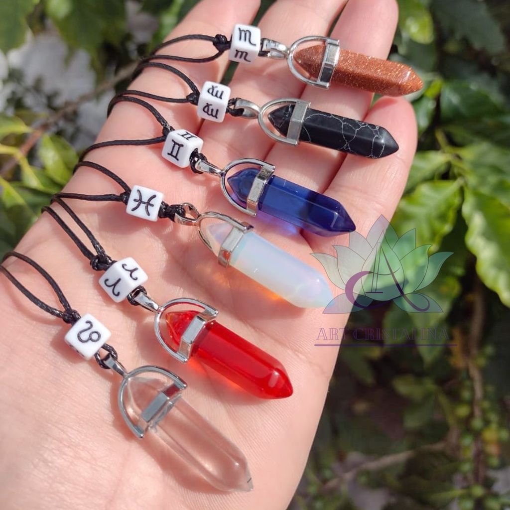 Cordão com comprimento Ajustável . Touro : Olho de tigre Aquário : Sodalita Peixes: Pedra da Lua Libra : Quartzo Rosa Câncer : Quartzo Verde Escorpião : Pedra do Sol Gêmeos :Obsidiana Azul Aries : Obsidiana Vermelha Virgem : Howlita Negra Capricórnio : Ônix Leão : Cristal Sagitário : Ametista